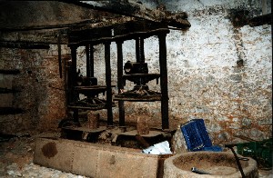 and crushes them until olive oil is made. In this picture the old crushers are shown